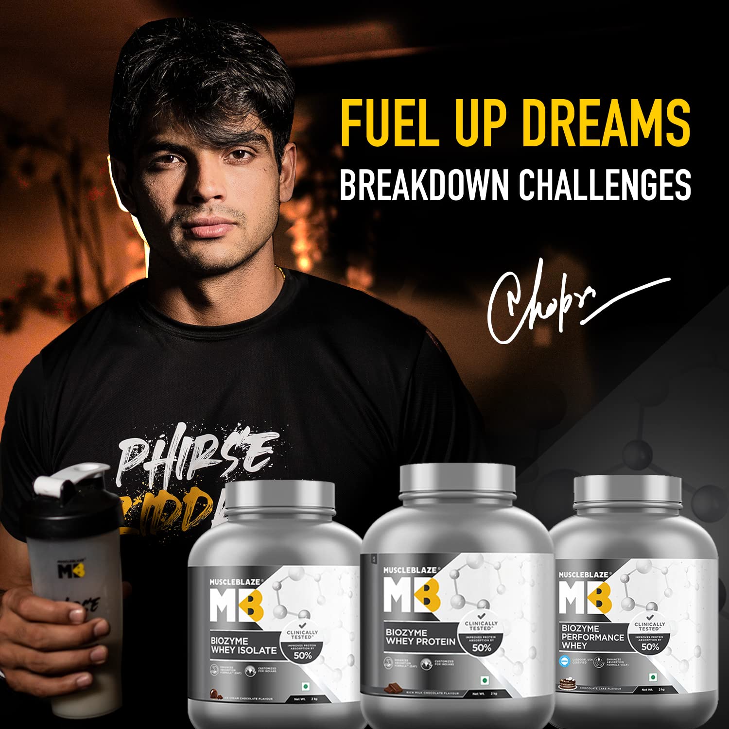MuscleBlaze Biozyme Performance Whey Protein | Clinically Tested 50% Higher Protein Absorption | Informed Choice UK, Labdoor USA Certified & US Patent Filed EAF®