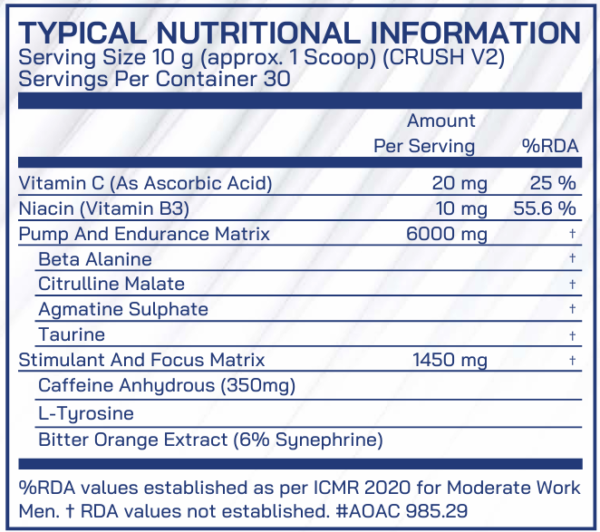 - XSN CRUSH V2 MAX POTENCY PREWORKOUT is the only choice. Loaded with Beta-Alanine, Creatine Monohydrate and DMAE to boost endurance and focus to get you through the toughest workouts.